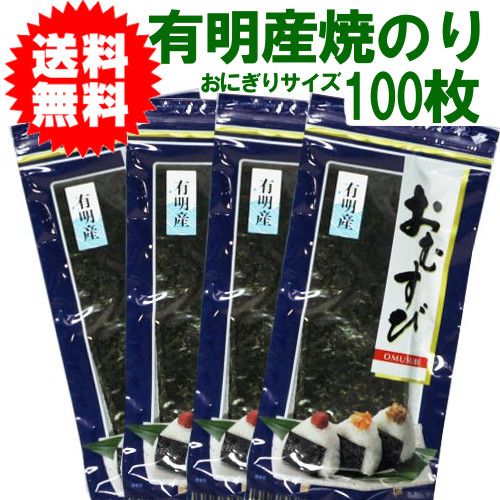 おにぎりのり100枚 有明産焼き海苔3切25枚x4袋セット メール便送料無料 香り良い有明のり使用【メール*45】