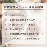 食物繊維(ポリデキストロース)と干し椎茸の砕片を配合したしいたけのコクのあるうまみがやみつきになる「しいたけ茶」です。