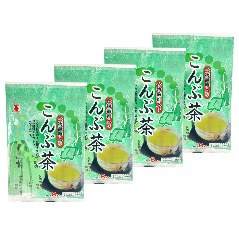 こんぶ茶 昆布茶 3g×8P 4袋セット(32本) かね七 食物繊維入り 羅臼昆布 茶碗蒸し 炊き込みご飯 スティックタイプ メール便送料無料