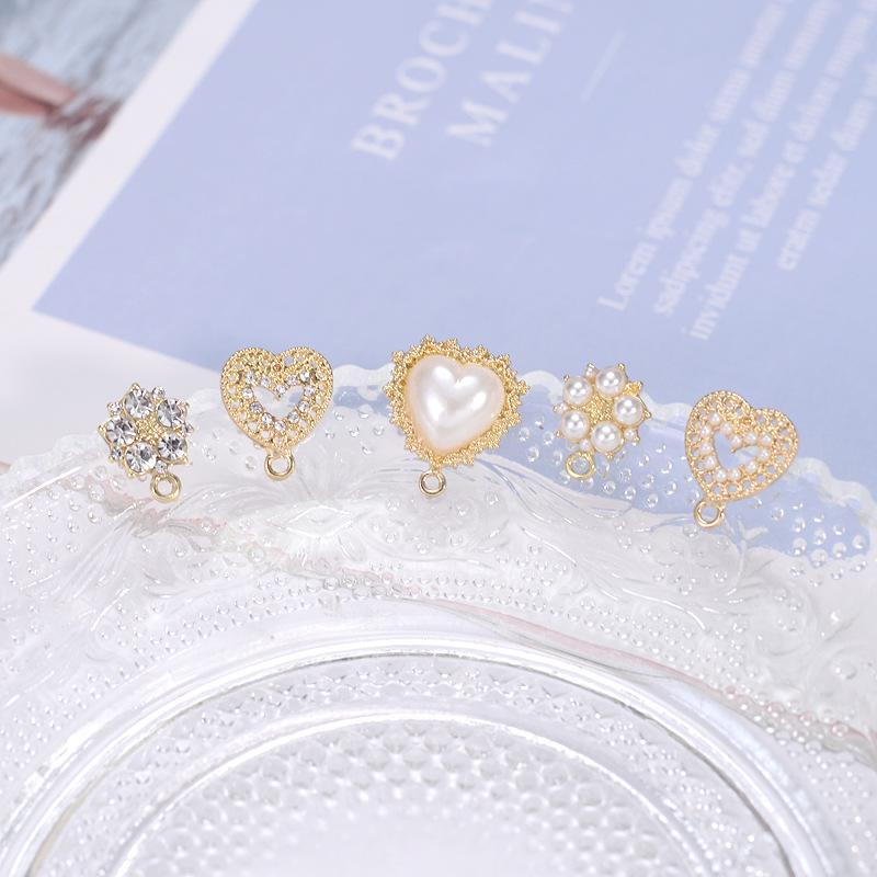 ポストピアス レディース ピアス 金具 s925ポスト ハート型 パール&ラインストーン付 ピアスパーツ カン付 魅力 おしゃれ オリジナル 1ペア【2ケ】