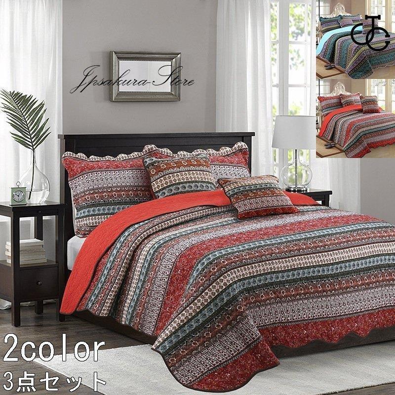 2021 ベッドカバー マルチカバー ク 北欧風 中綿入り 寝具カバー 3点セット ベッドスプレッド キルトダブル おしゃれ 四季適用 高質感 おしゃれ 洗える 可愛い