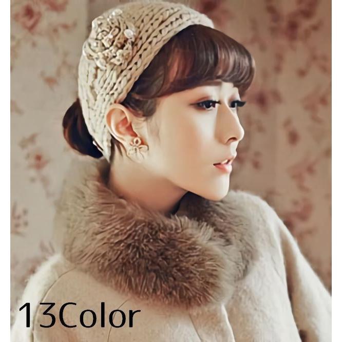 お花のモチーフがかわいいニットターバン。