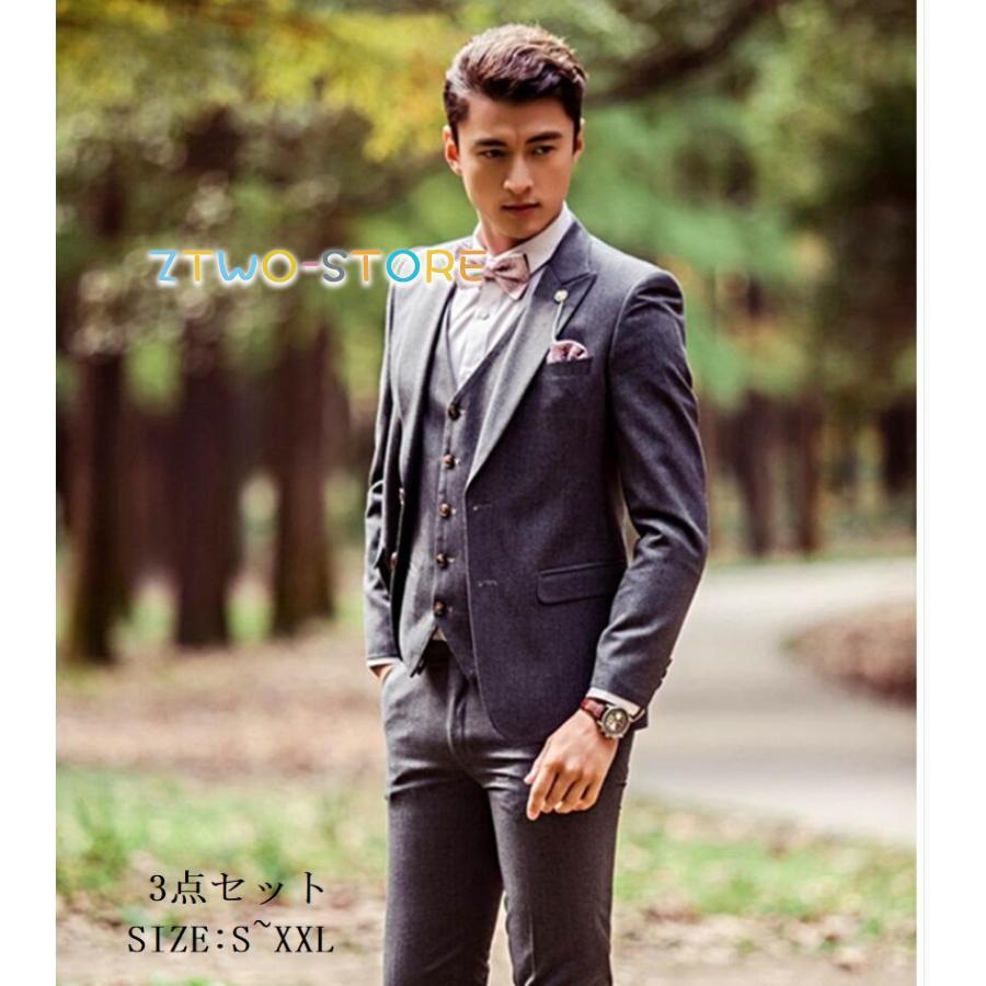 チェック柄 タキシードスーツ 3ピーススーツ メンズスーツ 2つボタンスーツ 結婚式 二次会 成人式 卒業式 就職活 春秋冬 ビジネスフォーマルスーツ