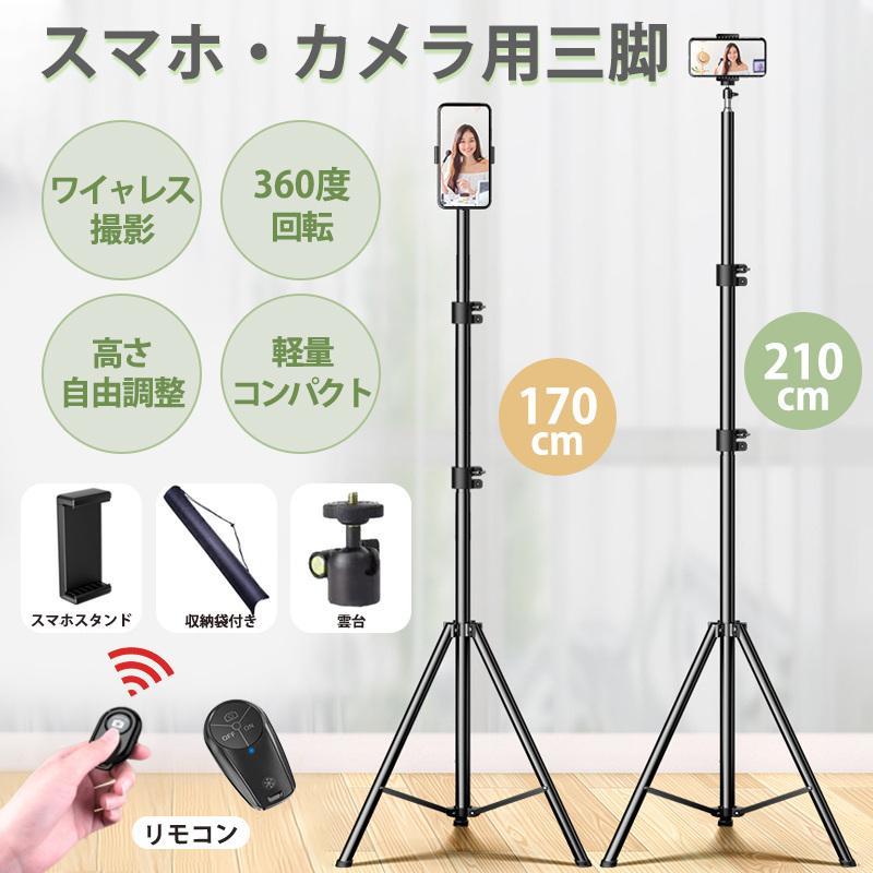 三脚 スマホ用 自撮り ビデオ iPhone 自撮り棒 bluetooth スマホスタンド 遠隔撮影 360度回転 折り畳み リモコン 2.1m
