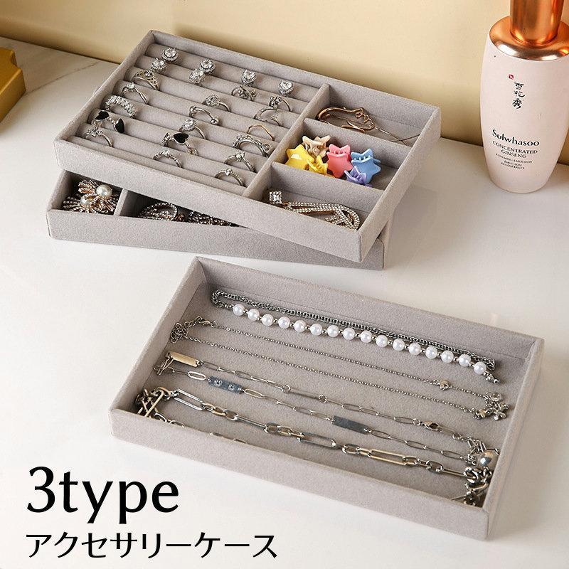 アクセサリーケース アクセサリートレイ アクセサリー収納 ジュエリー収納 小物入れ 仕切り付き ベルベット調 ベロア調 起毛 リング 指輪 ピアス イ