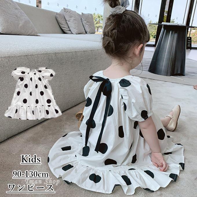 ワンピース 女の子 子ども服 子供服 ひざ丈 水玉柄 ひざワンピース キッズ 半袖ワンピ ワンピ 韓国子供服 保育園 幼稚園 可愛い オシャレ 夏物 新作