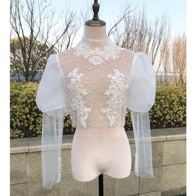 ウェディングボレロ 長袖 パール レース ブライダル 花嫁 ウェディングドレスアレンジ オフホワイト 結婚式 二次会 披露宴 エレガント クラシック 上品