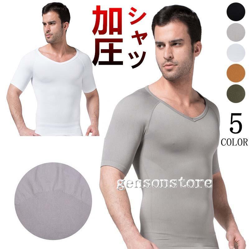メンズ コンプレッションウェア 半袖 Tシャツ Vネック シェイプアップ シェイパー お腹 引き締め 着圧シャツ 加圧インナー 無地 筋トレ フットネス 姿勢 矯正