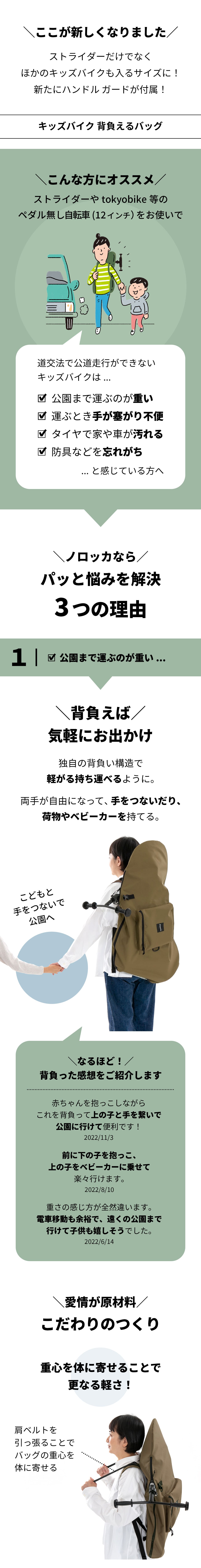 | norokka ストライダーバッグ トーキョーバイク ( tokyobike ) キッズバイク ( ペダル無し自転車 )も 収納 背負える 2ウェイ式 キャリーバッグ \ ヘルメット や プロテクター や 持ち運び ( キャリー ) に! スタンド ベルト の代わりにも/ |