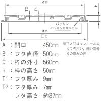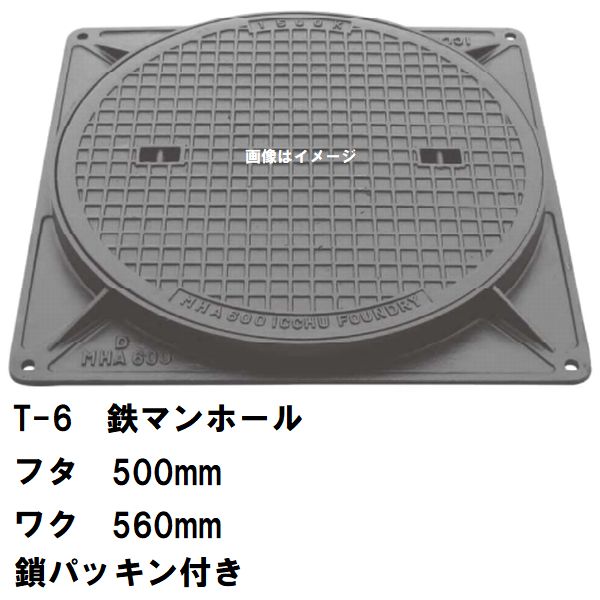 鉄マンホール 鉄蓋・枠 フタ直径500mm 鎖・パッキン付 T-6中型トラック耐荷重 MHA-450型 沖縄離島不可(浄化槽・ハンドホール・カバー・交換・ふた)