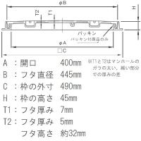 鉄マンホール 鉄蓋・枠 フタ直径445mm 鎖・パッキン付 T-2乗用車耐荷重 MHB-400型 沖縄離島不可(浄化槽・ハンドホール・カバー・交換・ふた)