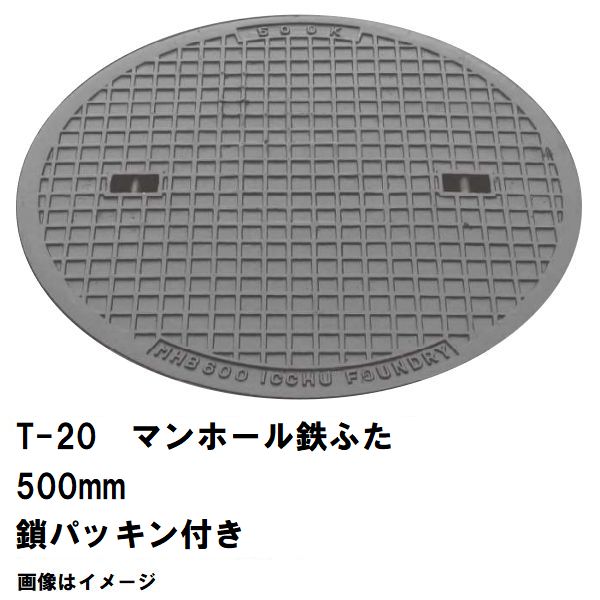 鉄マンホール 鉄蓋 フタ直径500mm 鎖・パッキン付 T-20大型トラック耐荷重 MHD-450型 沖縄離島不可(浄化槽・ハンドホール・カバー・交換・ふた)