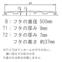 材質 蓋・枠:蓋FCD500(球状黒鉛鋳鉄)/枠FC200(ねずみ鋳鉄)