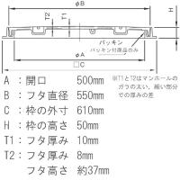 材質 蓋・枠:蓋FCD500(球状黒鉛鋳鉄)/枠FC200(ねずみ鋳鉄)