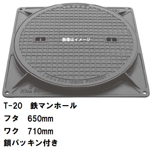 鉄マンホール 鉄蓋枠セット フタ直径650mm 鎖パッキン付 T-20大型トラック耐荷重 MHD-600(鉄製ふた 浄化槽 ハンドホール 溜桝 丸マス 汚水 集水 雨水 下水 交換)