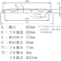 材質 蓋・枠:蓋FCD500(球状黒鉛鋳鉄)/枠FC200(ねずみ鋳鉄)