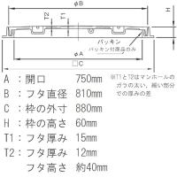 材質 蓋・枠:蓋FCD500(球状黒鉛鋳鉄)/枠FC200(ねずみ鋳鉄)