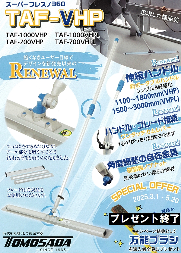 友定 純正 土間仕上 スーパーフレスノTAF-1000VHPLセット ブレード寸法L1000×W105×厚0.3mm 軽量伸縮柄1.5-3.0m