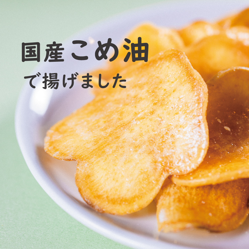 九州産のさつま芋を、少し厚めに薄切りにし、国産こめ油でパリッと揚げています。