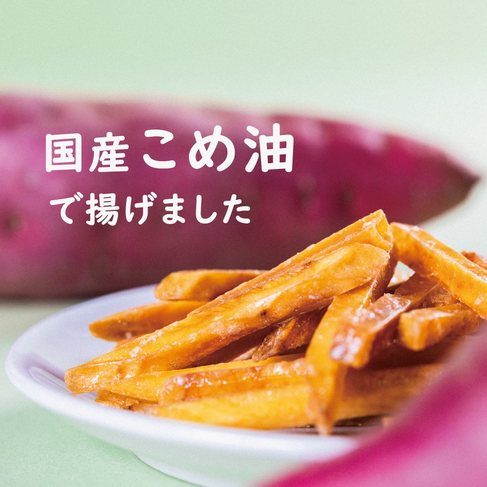 九州産のさつま芋を、国産こめ油でカリッと揚げています。