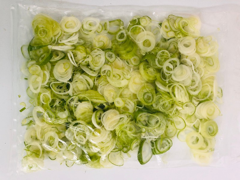 白ねぎを洗浄殺菌し、刻みスライスカット、真空パック加工後、急速冷凍(バラ凍結)していますので、野菜本来の風味と味覚が楽しめます。