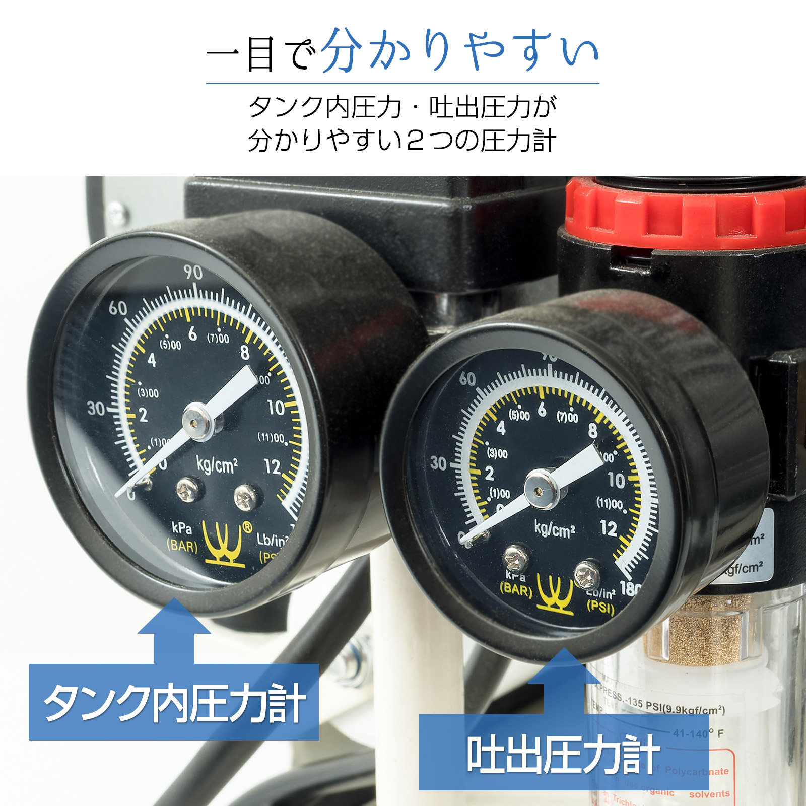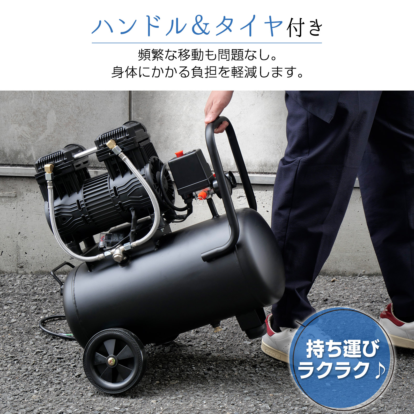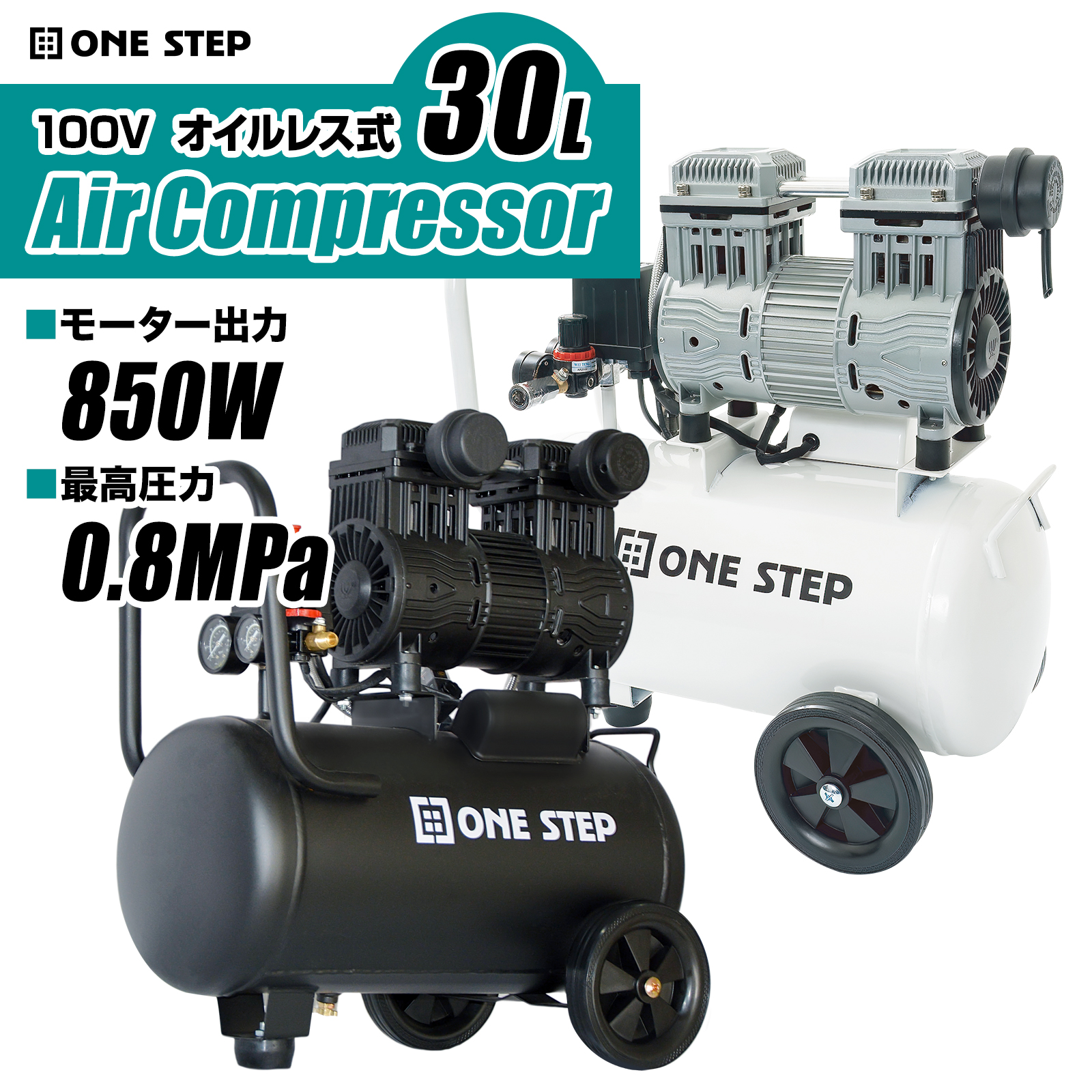 エアーコンプレッサー 100v オイルレス 静音 30l 小型 エアーコンプレッサー30l 軽量 圧力計 業務用 ホワイト