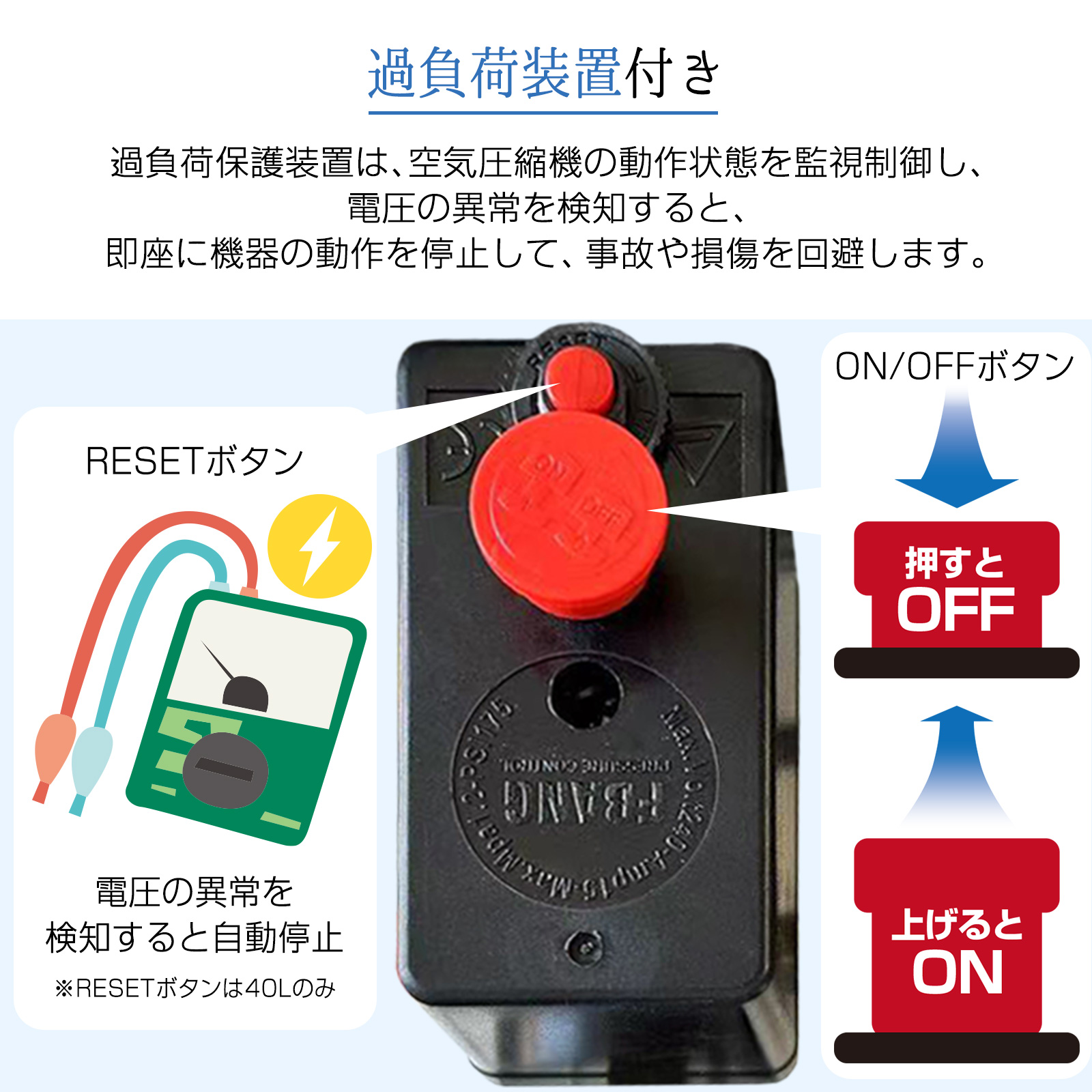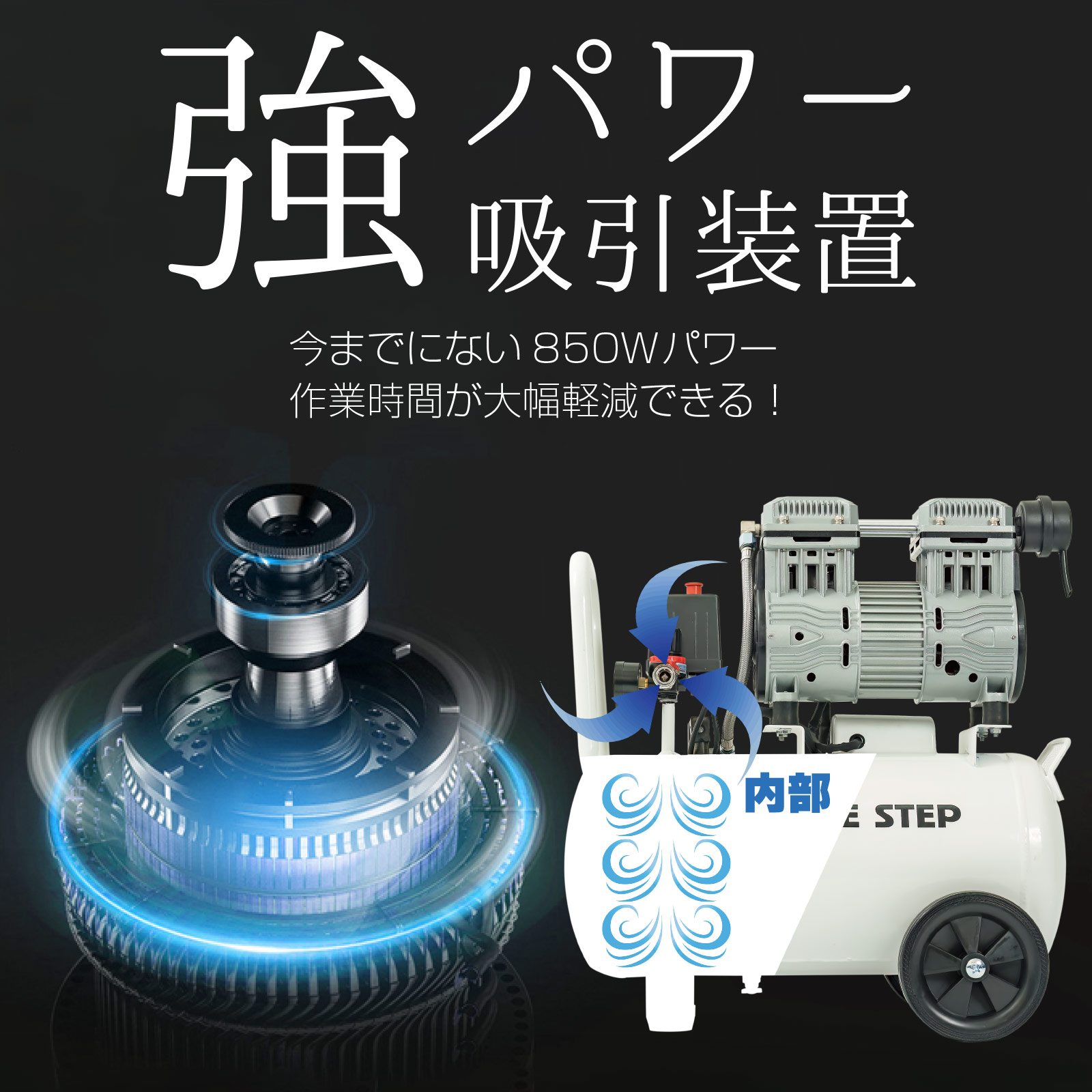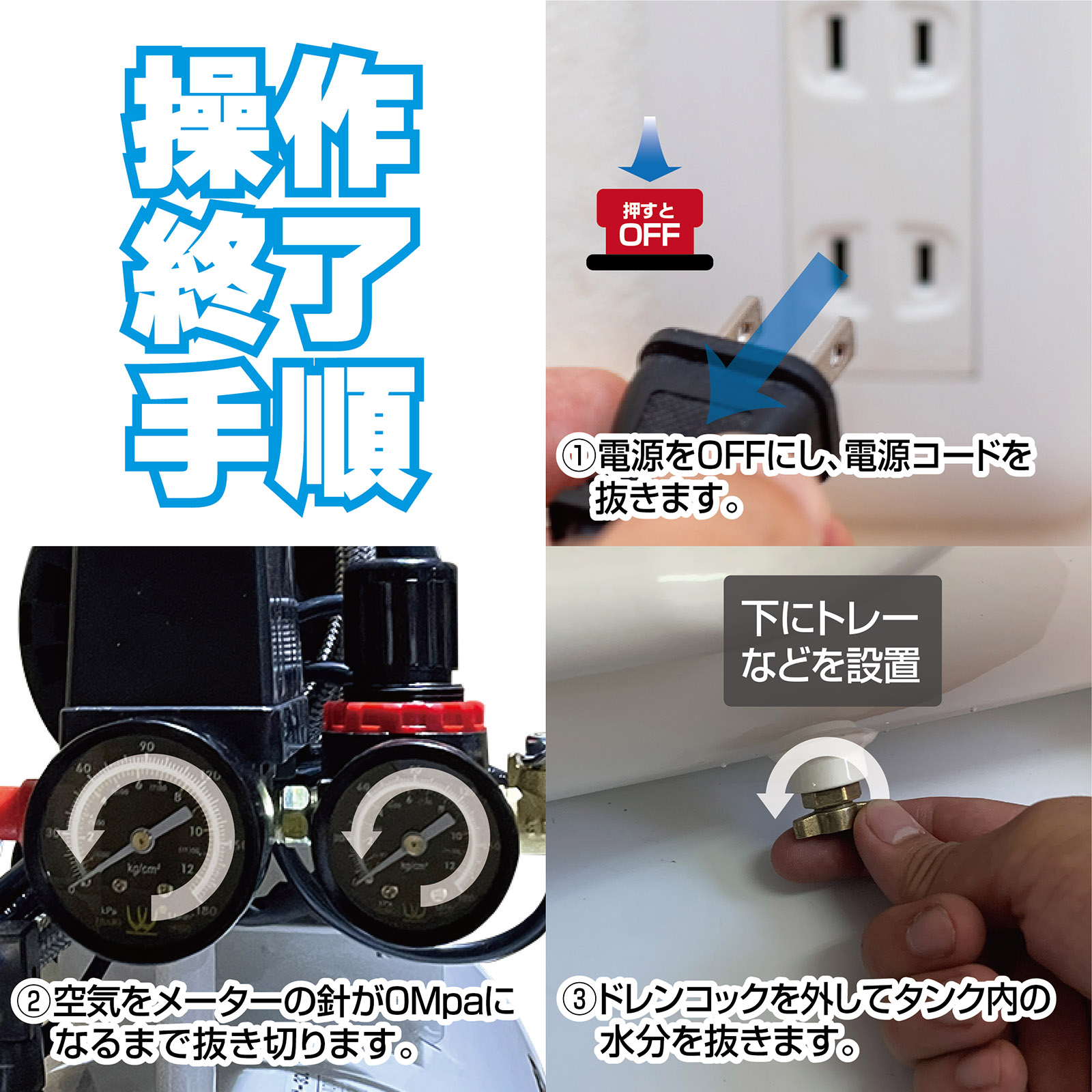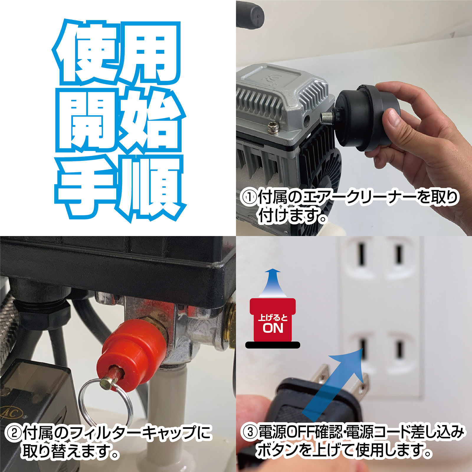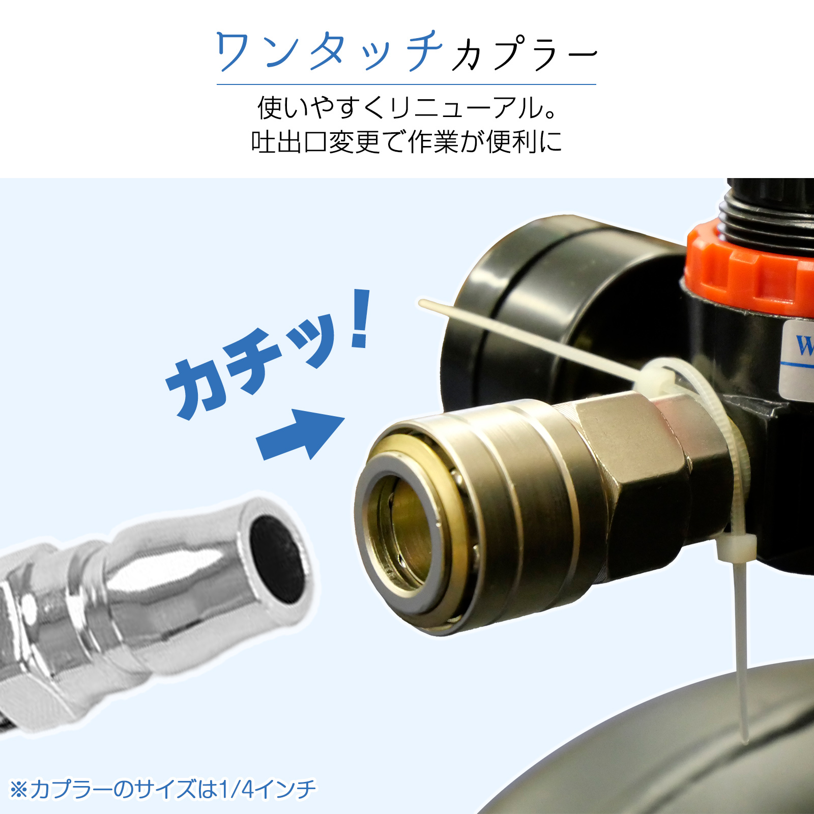 また、オイルレスのエアーコンプレッサーなので、メンテナンスも簡単です。