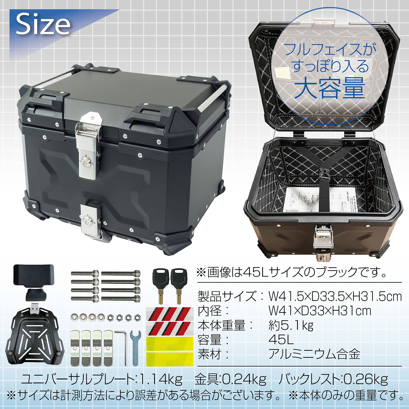 リアボックス バイク 45l 背もたれ バイクリアボックス大型 トップケース バイク 45l アルミ 大容量 軽量