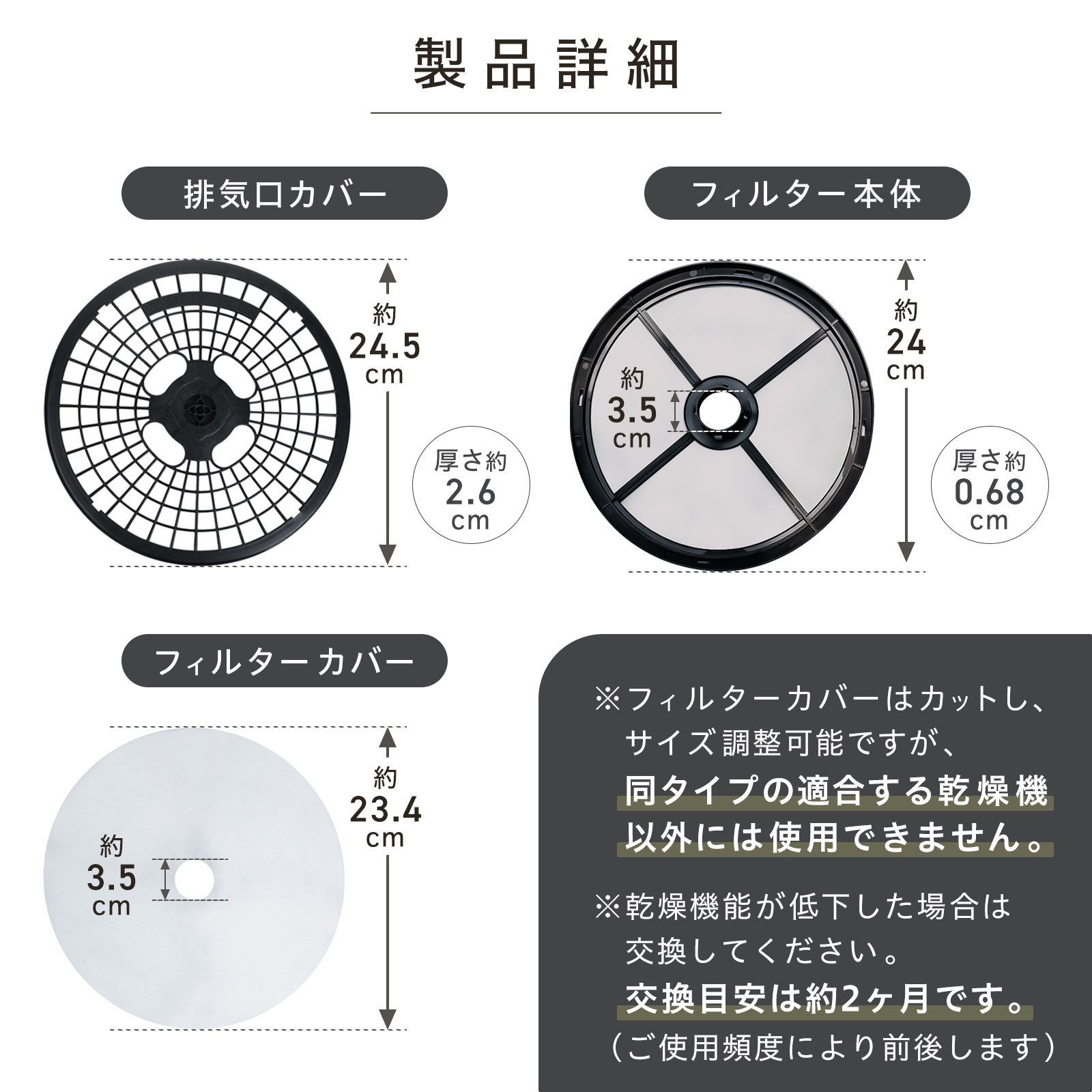 ・排気口カバー×1、フィルター本体×1セット