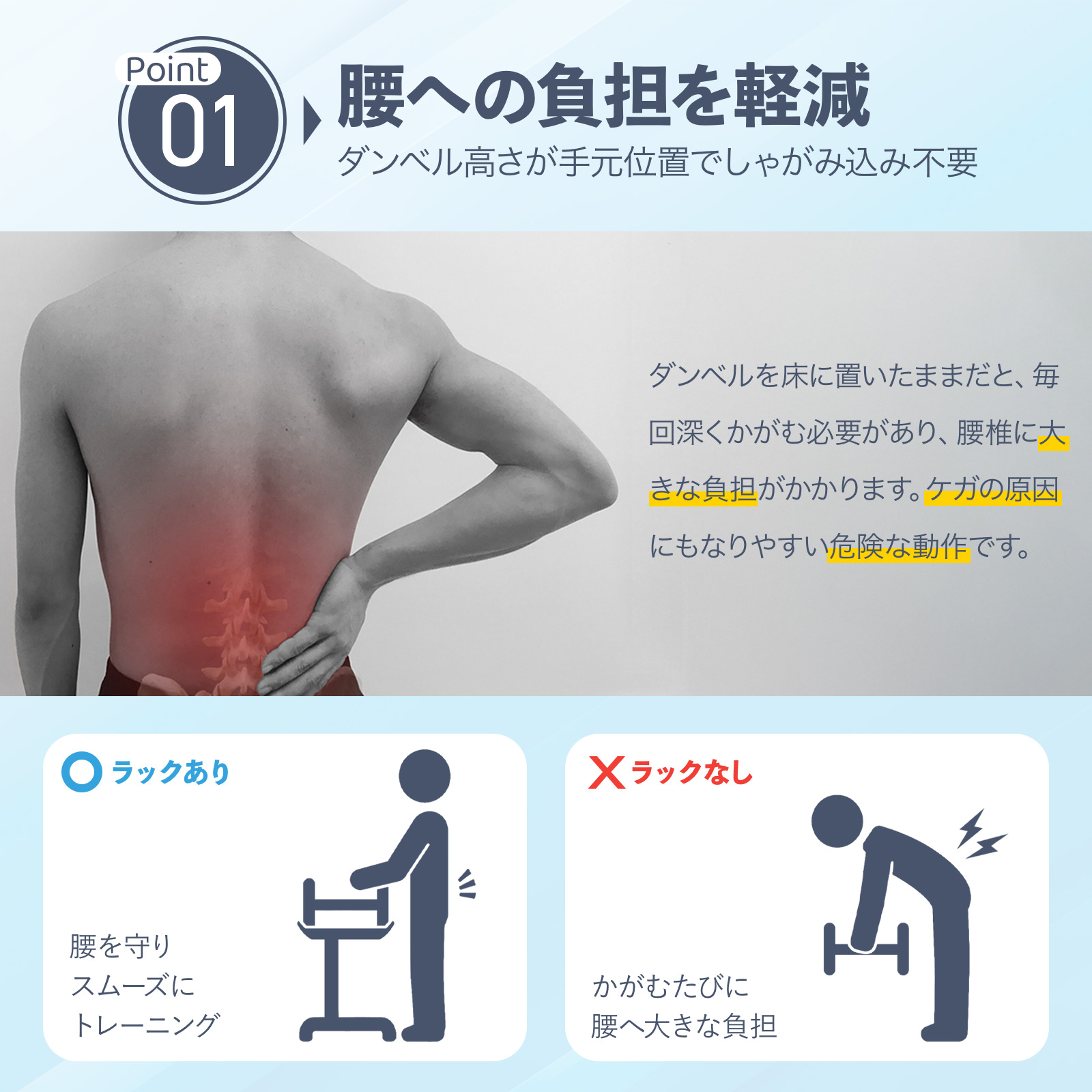 腰の負担を抑えながら快適にトレーニングできるスタンド。