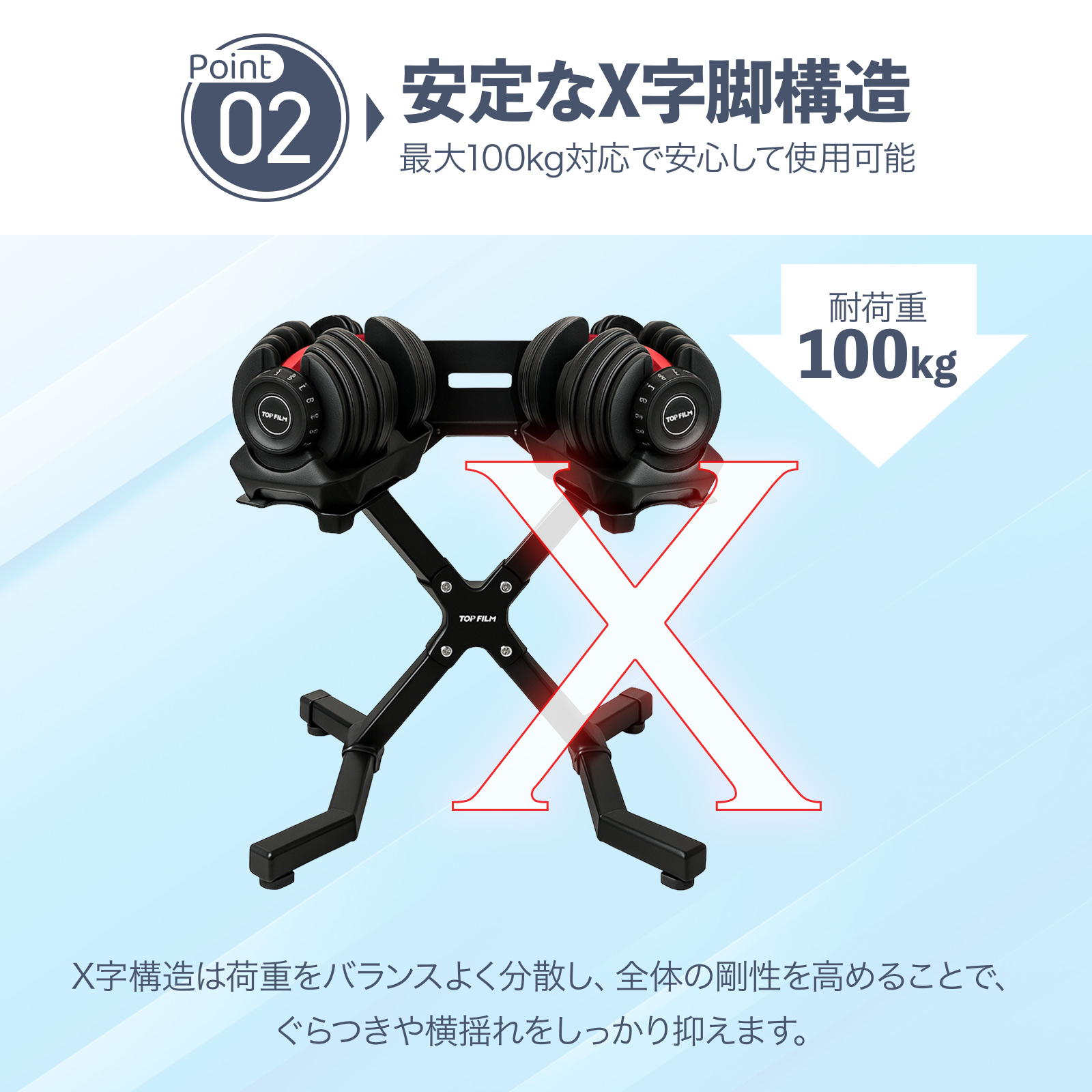 ダンベルスタンド 耐荷重100kg タブレット スマホ スタンド付き X字設計 八の字デザイン ダンベルラック 可変式ダンベル置き ダンベルホルダー 収納 安定 1年保証
