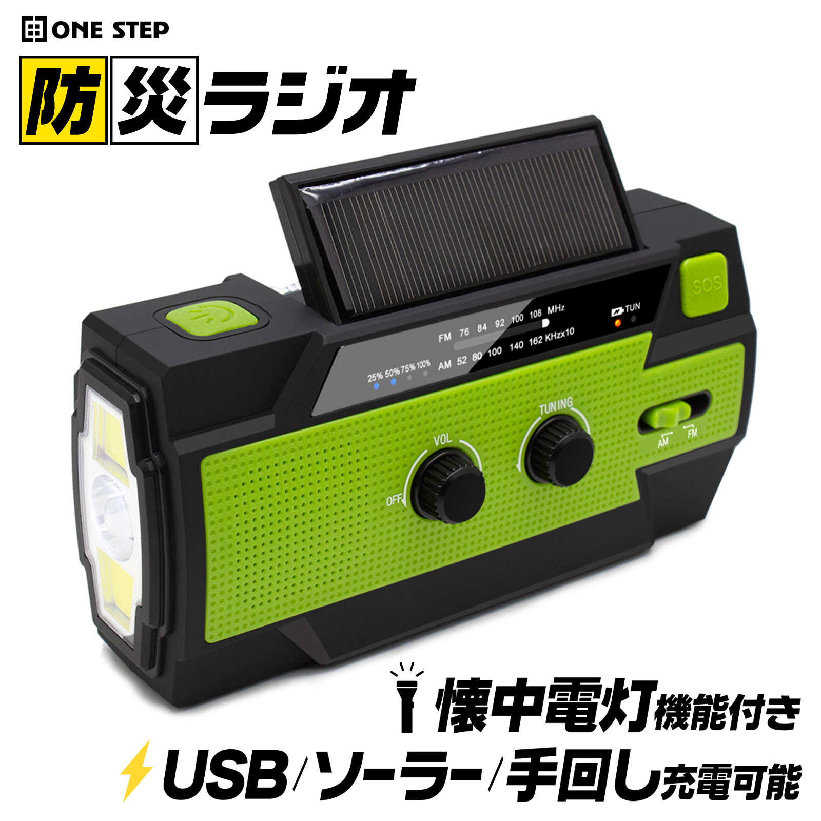 ONE STEPの防災ラジオはこんな機能があります!懐中電灯