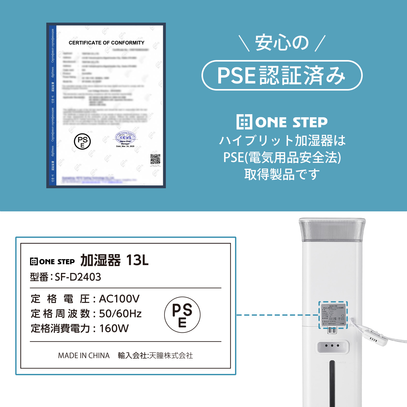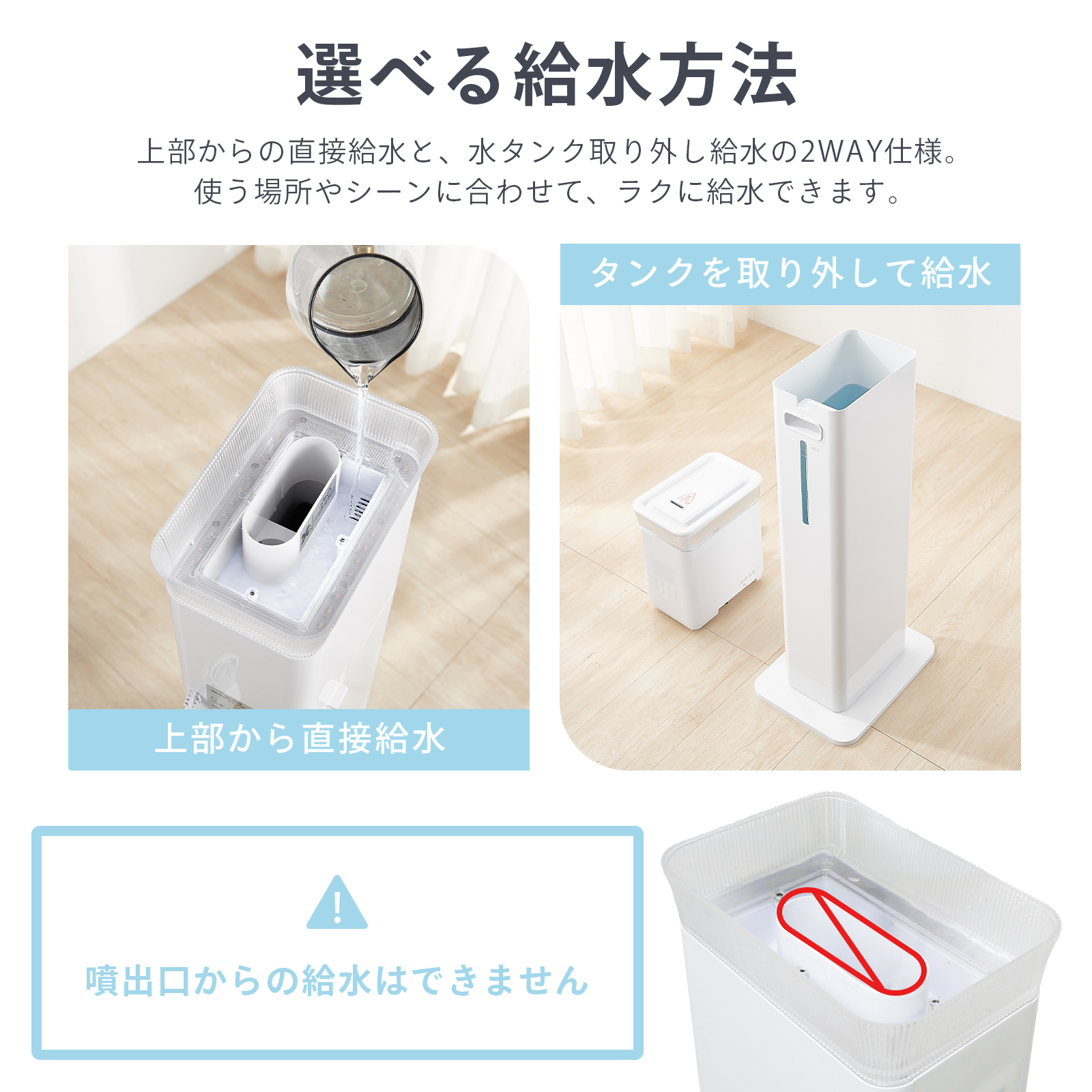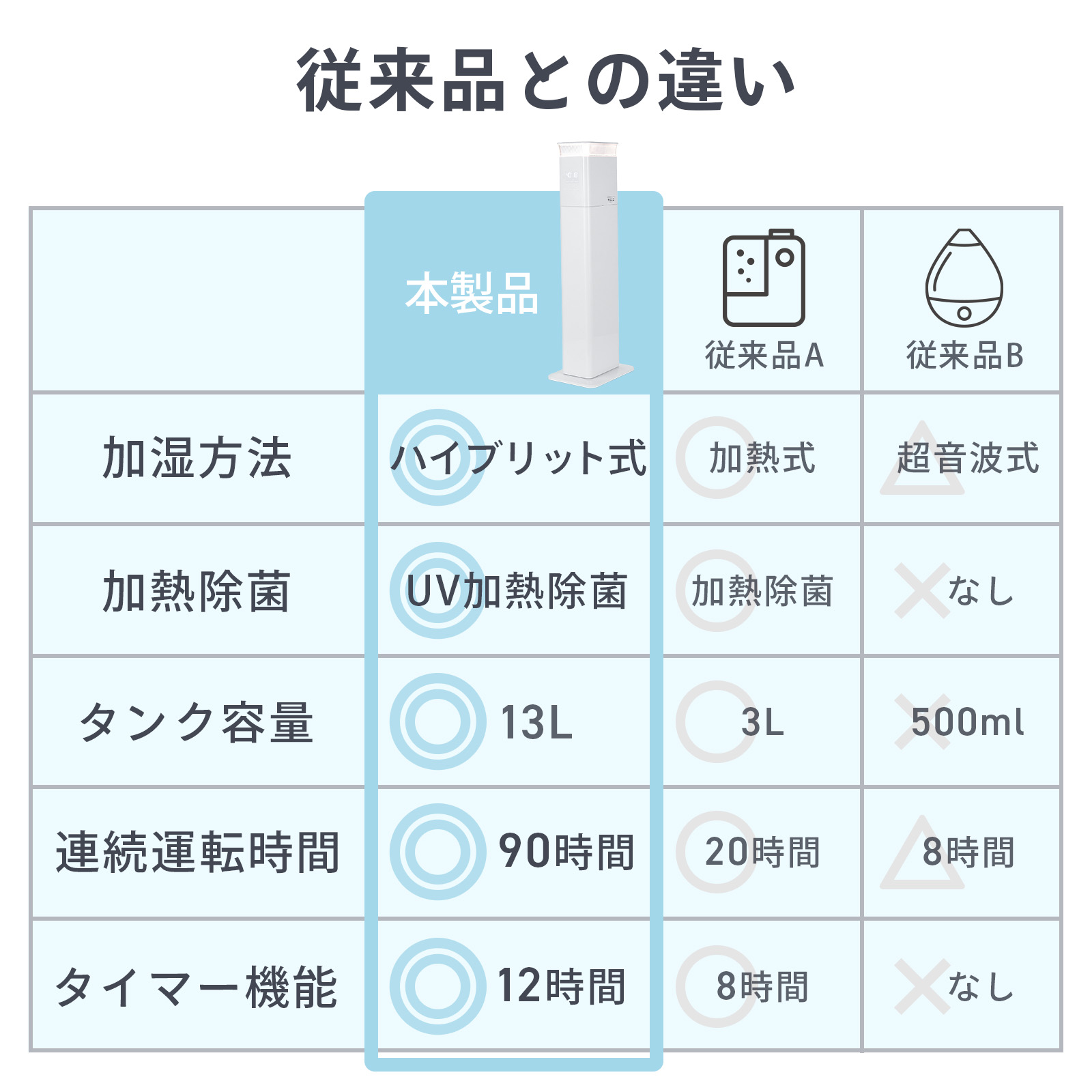 UV除菌 高温除菌 静音 省エネ 節電 空焚き防止 スリム パワフル 湿度設定 タイマー 上部給水 水漏れしない