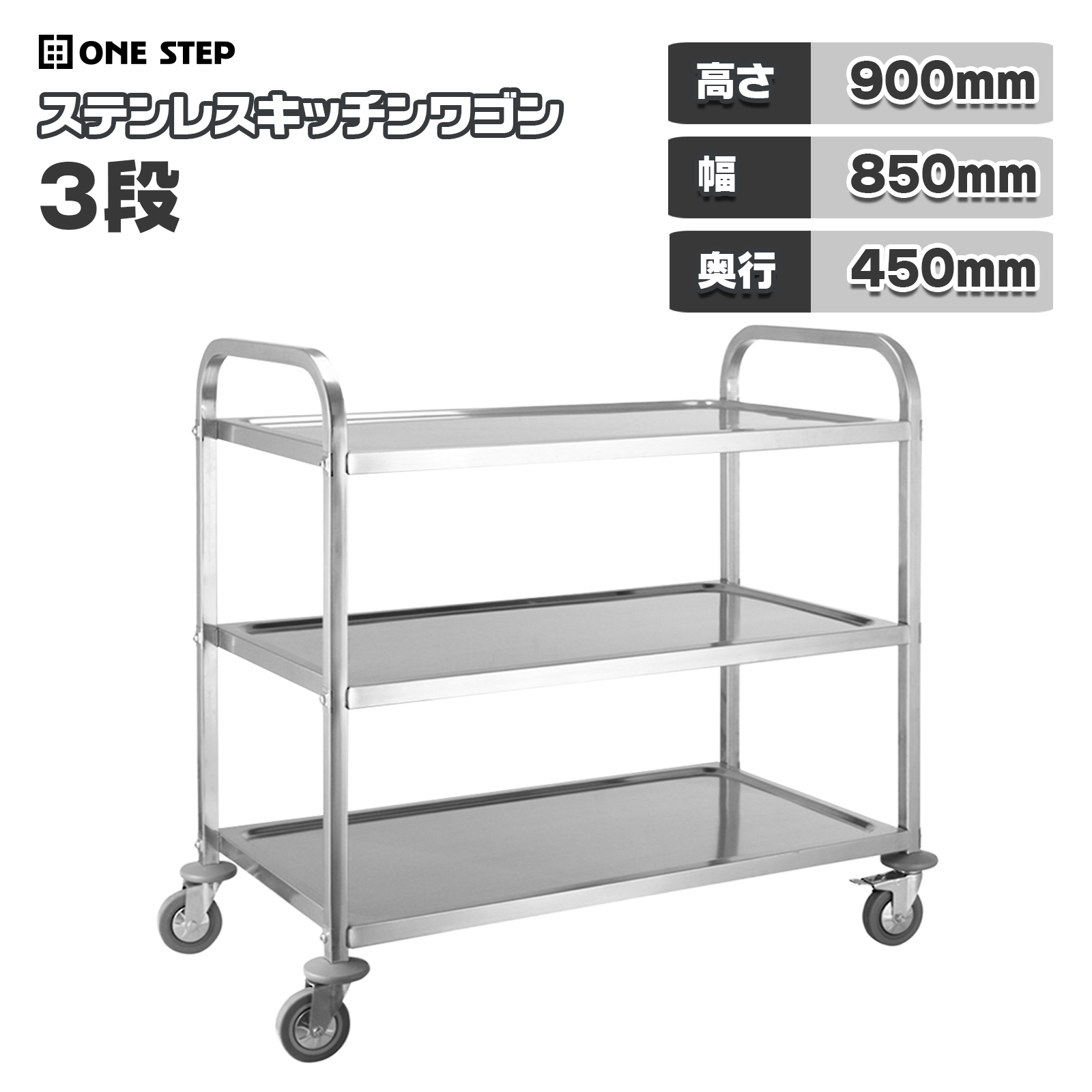 キッチンワゴン 業務用 キャスター付き 大きめ ステンレスワゴン 3段 85cm×45cm 配膳車 キッチンカート