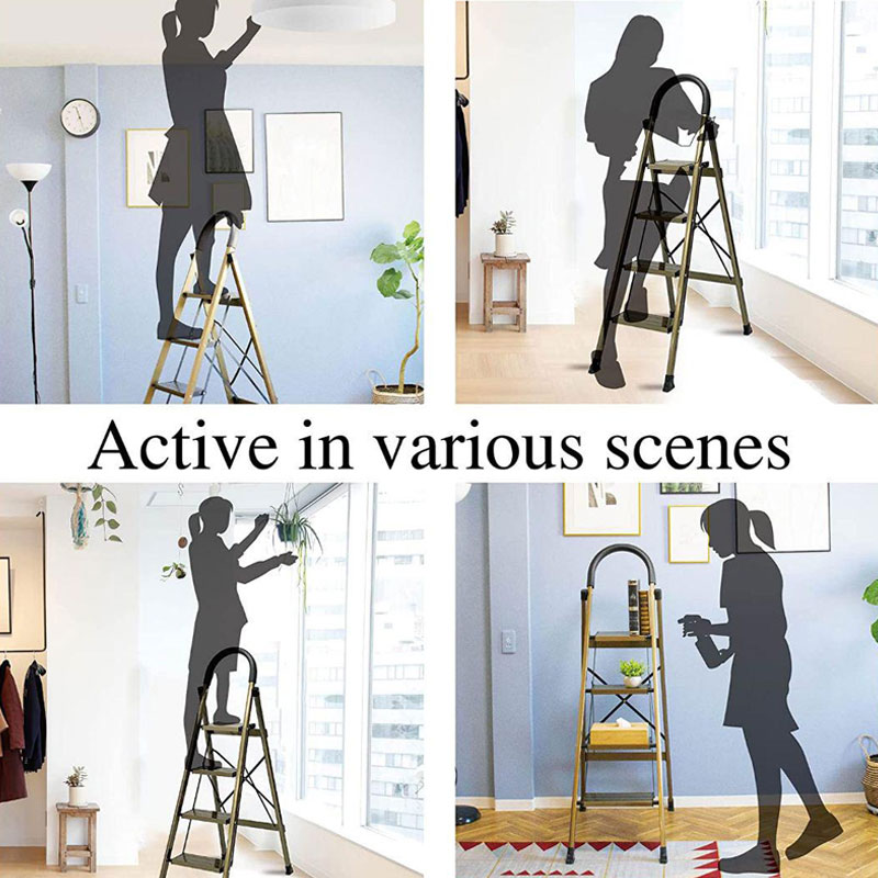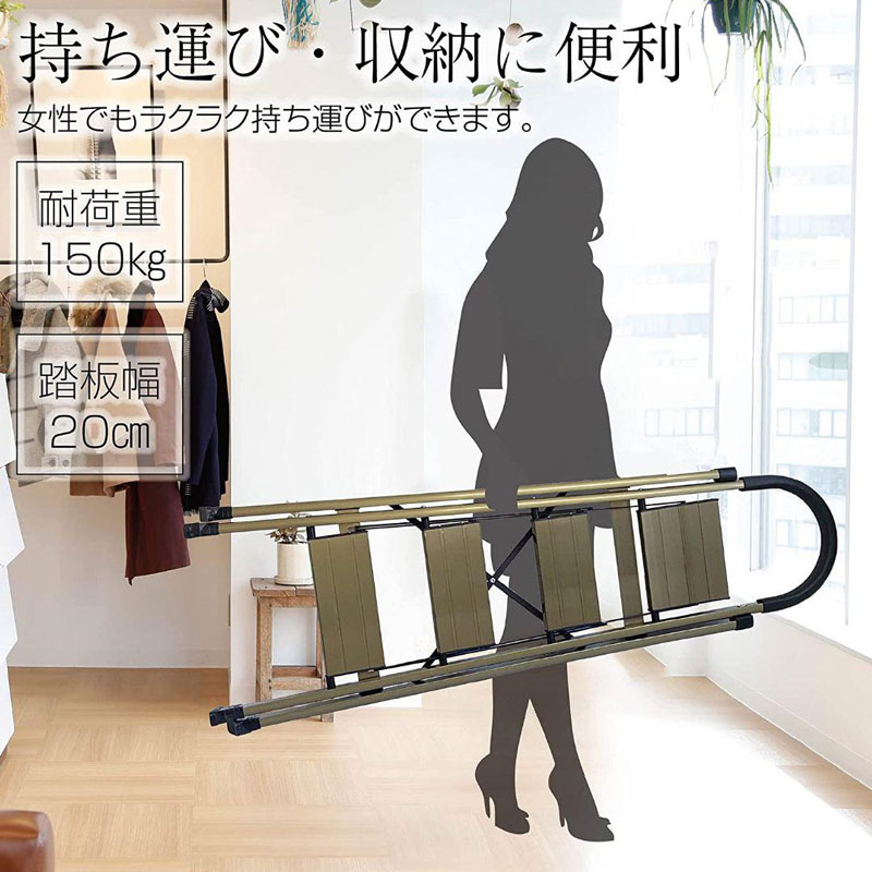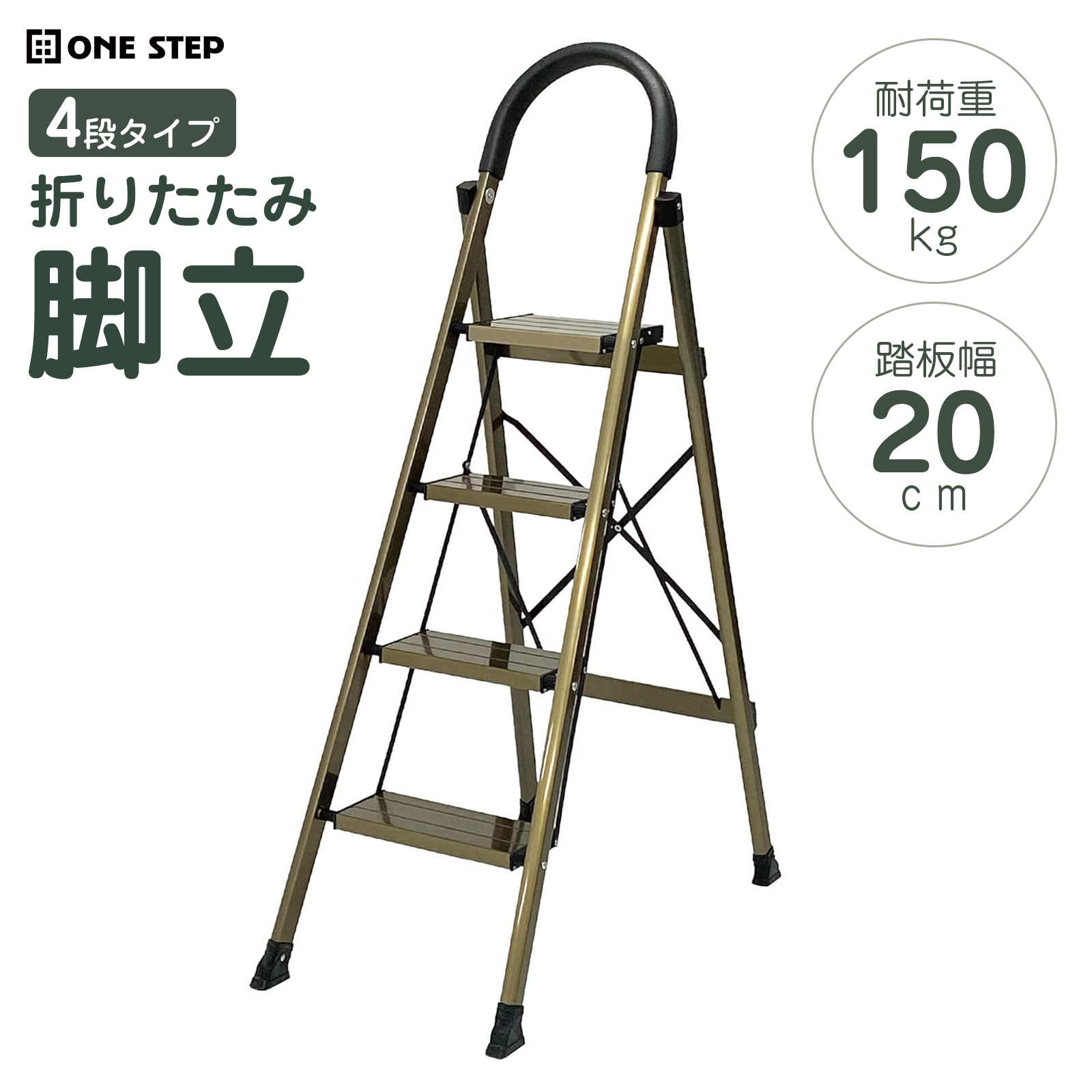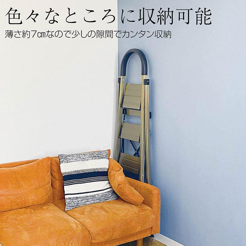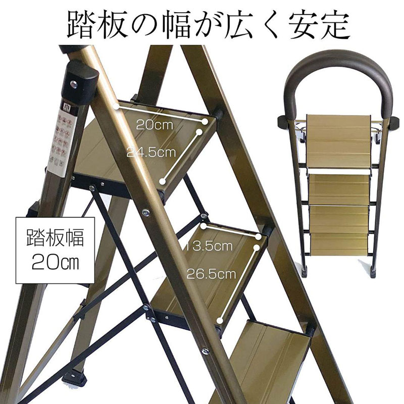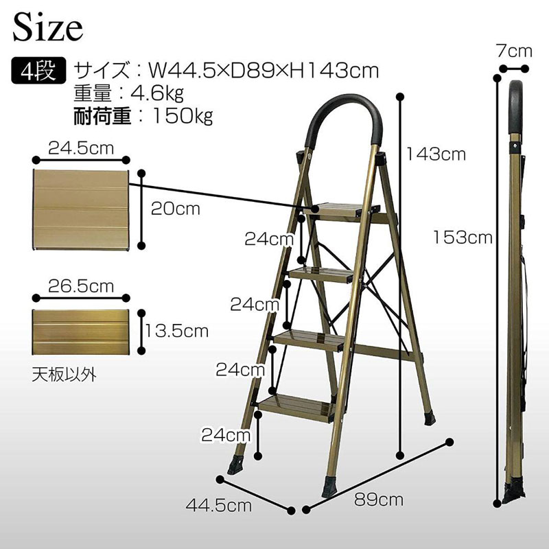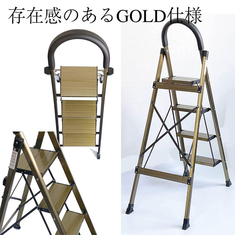 脚立 踏み台 4段 折りたたみ おしゃれ 踏台 アルミ ステップ 軽量 手すり 滑り止め 耐荷重150kg ゴールド