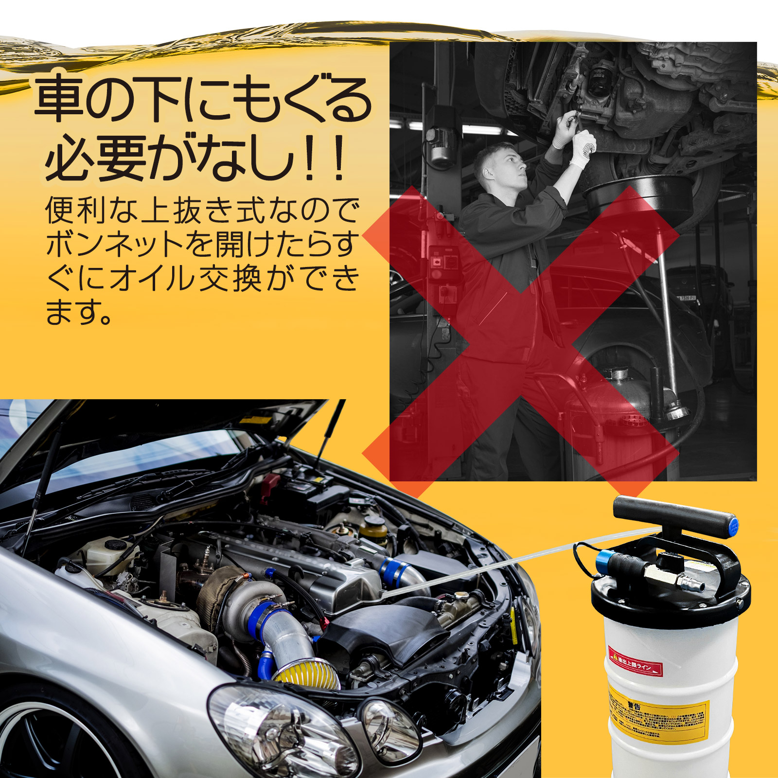 オイルチェンジャー 6.5L オイル交換 電気不要 ポータブル ホース 上抜き ジャッキアップ不要 タンク ポンプ バキュームポンプ