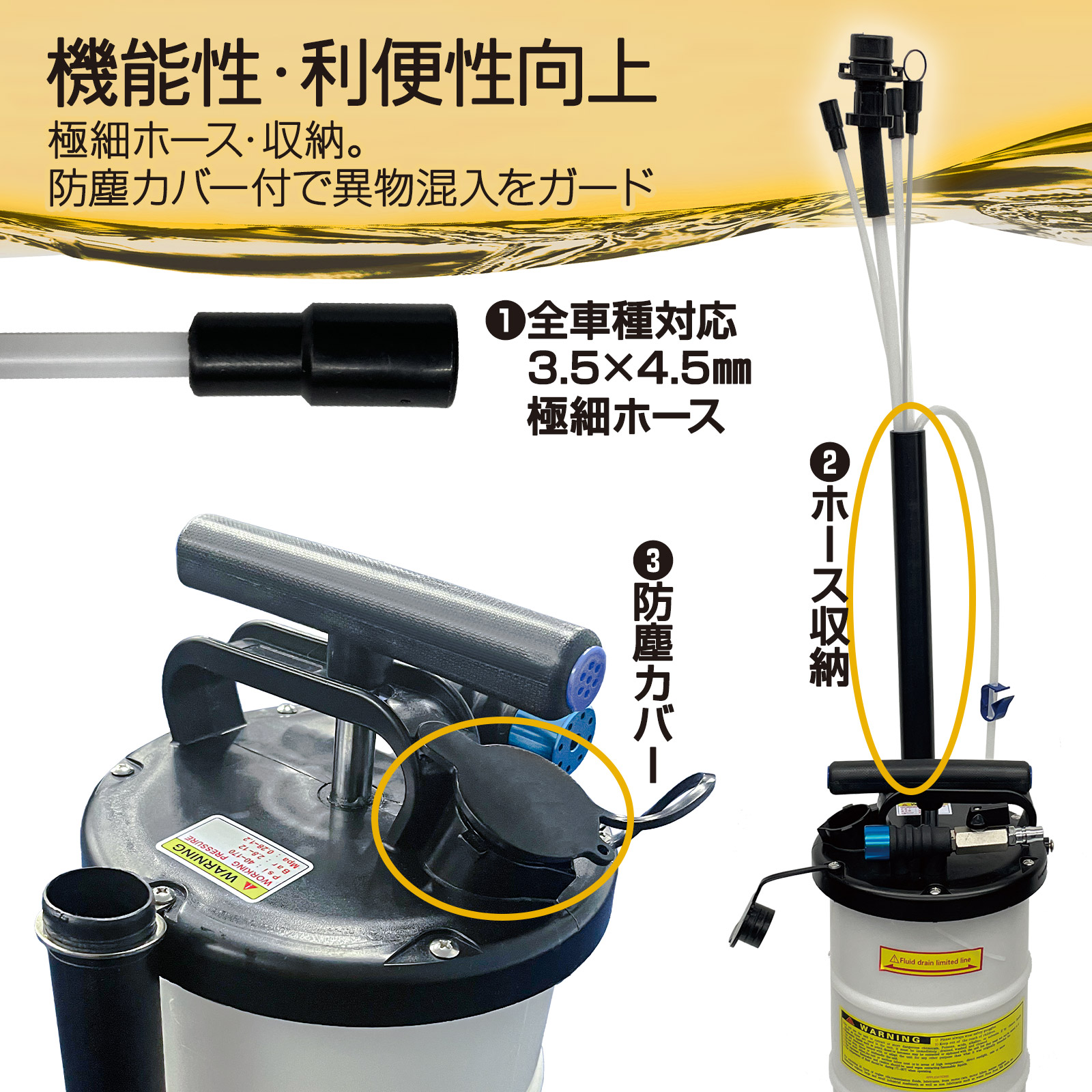 ※ガソリン・軽油・重油・灯油など燃料油の抜き取りには使用しないでください。