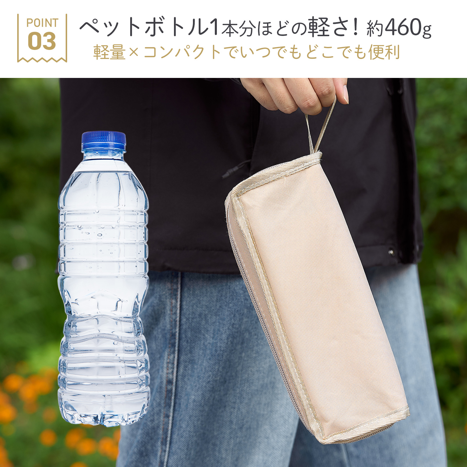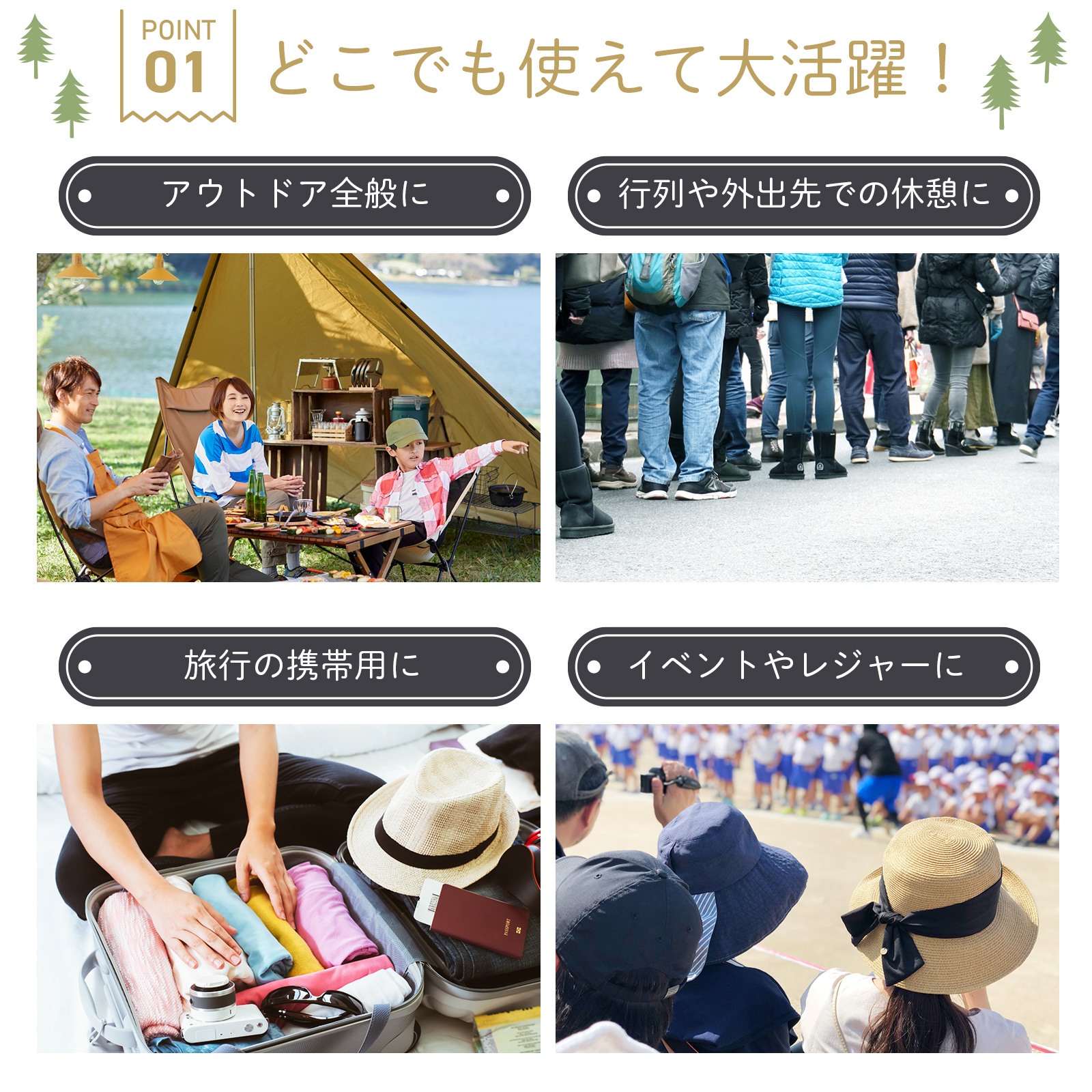 バッグにも収まり、旅行やアウトドア、イベント、フェスなど幅広く活躍。