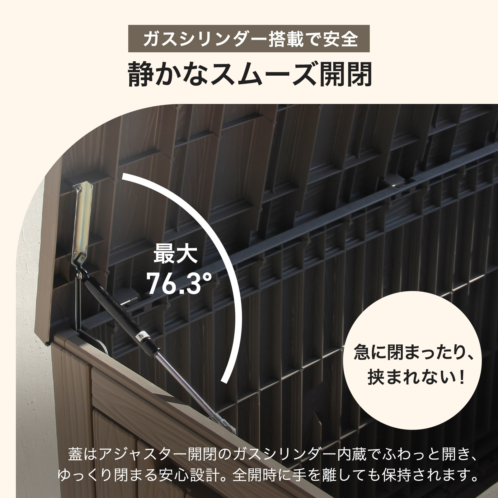 ガスシリンダーでフタがゆっくり開閉し、指挟み防止&手放し保持で使い心地も快適。