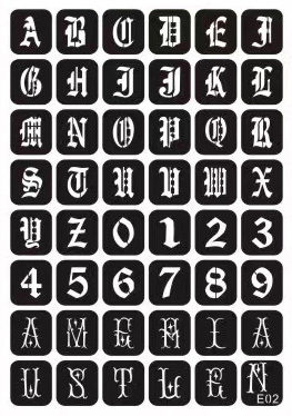ステンシルシール E02 A4台紙 複数絵柄 アート作品 ヘナタトゥー用 グリッタータトゥー用