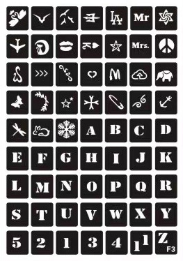 ステンシルシール F03 A4台紙 複数絵柄 アート作品 ヘナタトゥー用 グリッタータトゥー用