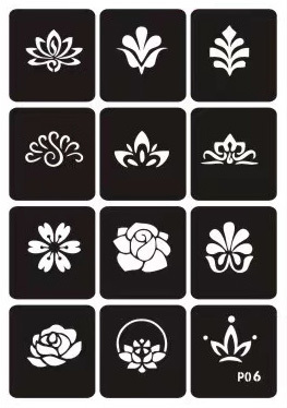 ステンシルシール P06 A4台紙 複数絵柄 アート作品 ヘナタトゥー用 グリッタータトゥー用