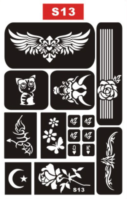 ステンシルシール S13 A4台紙 複数絵柄 アート作品 ヘナタトゥー用 グリッタータトゥー用