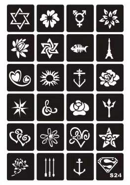ステンシルシール S24 A4台紙 複数絵柄 アート作品 ヘナタトゥー用 グリッタータトゥー用