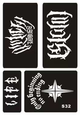 ステンシルシール S32 A4台紙 複数絵柄 アート作品 ヘナタトゥー用 グリッタータトゥー用