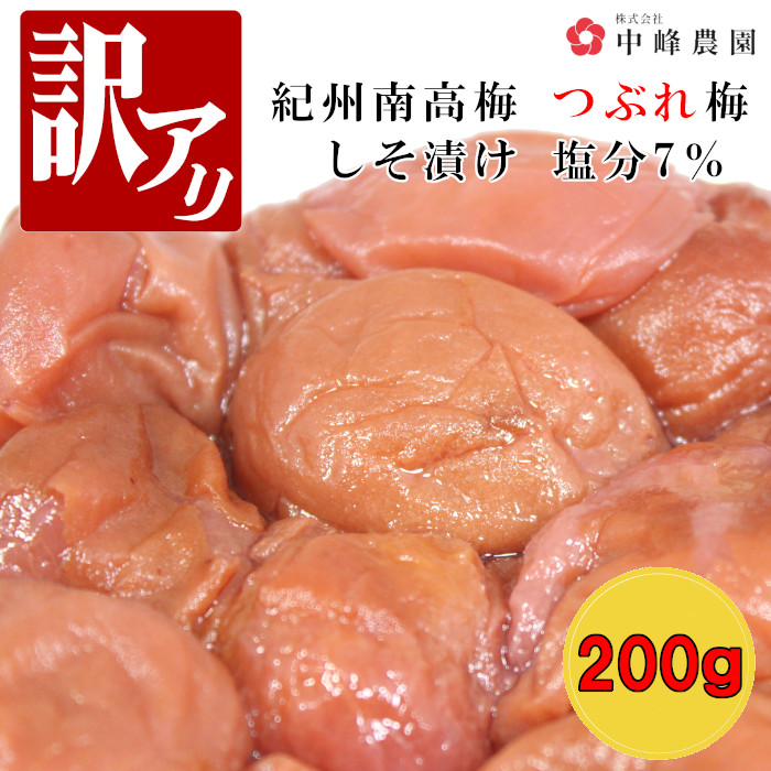 つぶれ梅 紀州南高梅 塩分7% しそ漬 200g ゆうパケット発送超簡易梱包 しそ梅干し うめぼし 紀州梅干 酸っぱい 和歌山 ご飯のお供 送料無料 蜂蜜 甘い 中峰農園