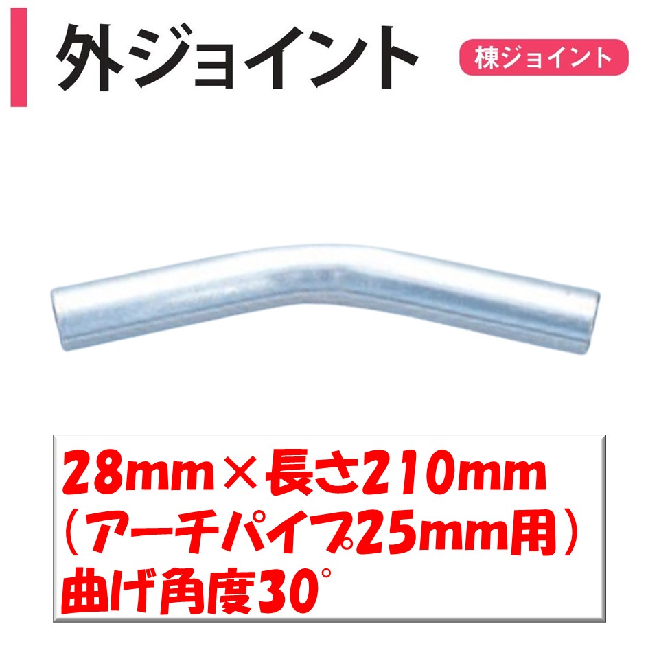 外ジョイント アーチパイプ25mm用 28×長さ210mm 角度30° 渡辺パイプ 農業用 ビニールハウス用 ハウス頂上用 金具