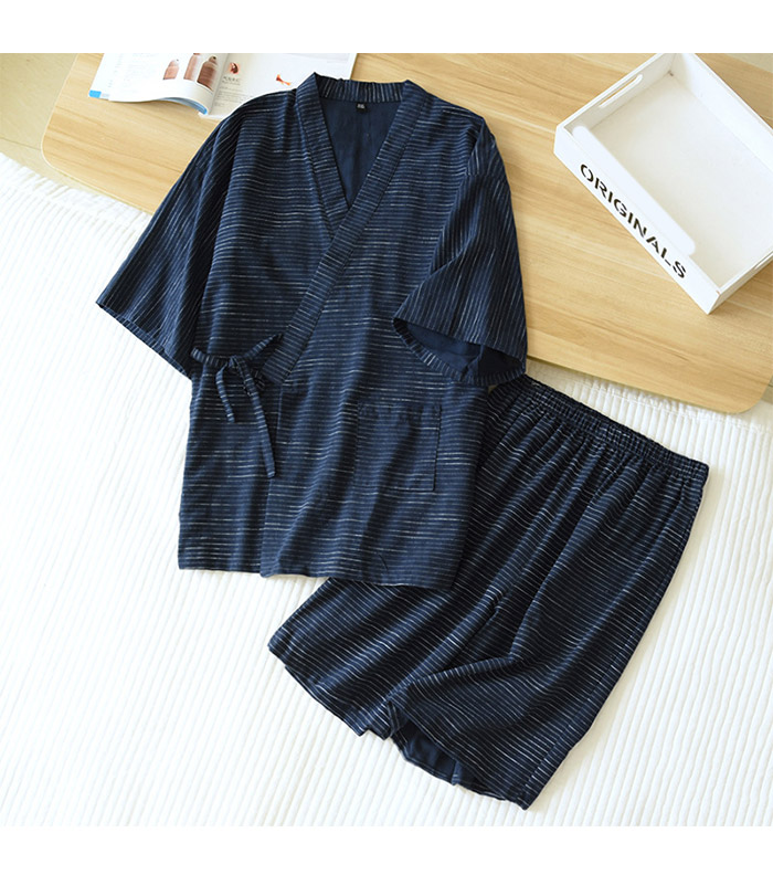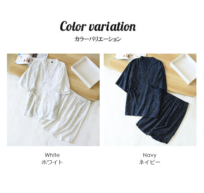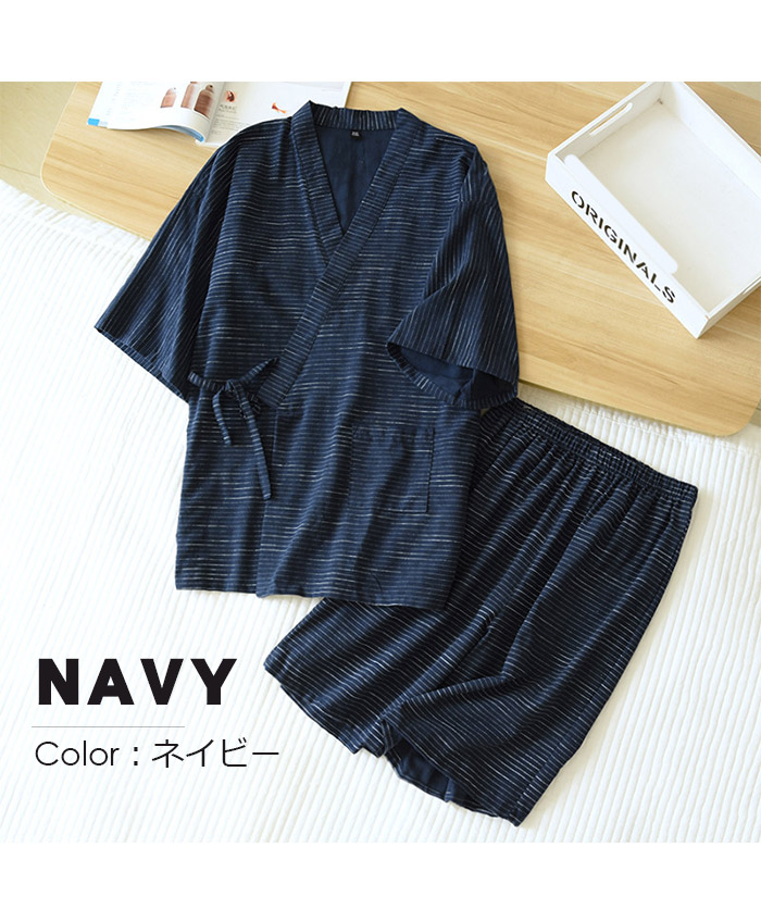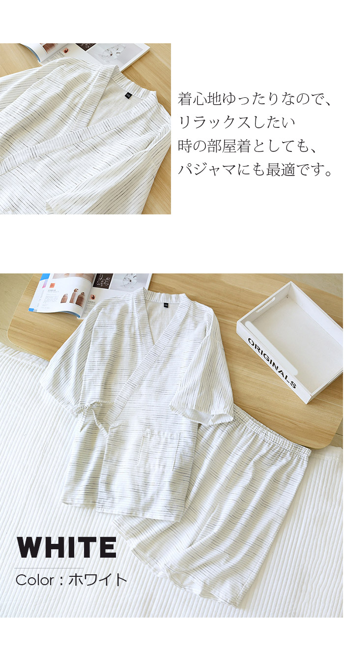 甚平 パジャマ 上下セット メンズ 男性 カップルペア 寝巻き セパレートパジャマ 長ズボン ルームウェア ナイトウエア 春 夏 浴衣 七分袖 綿 二重ガーゼ