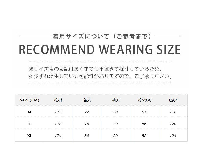 サイズ表は平置きで測定しております。