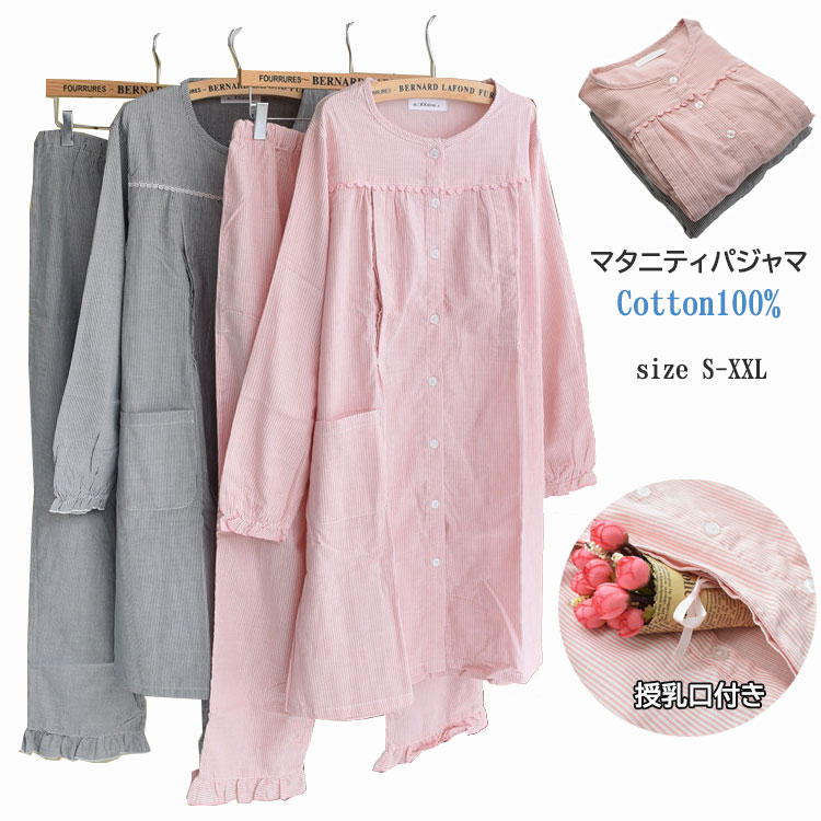 | 商品名 | 綿100%マタニティ用パジャマです。 長め長袖トップス&長ズボン2点セット、オールシーズン使えます。 授乳口付き、ウエストにも調整でき、産前産後使えます。 |